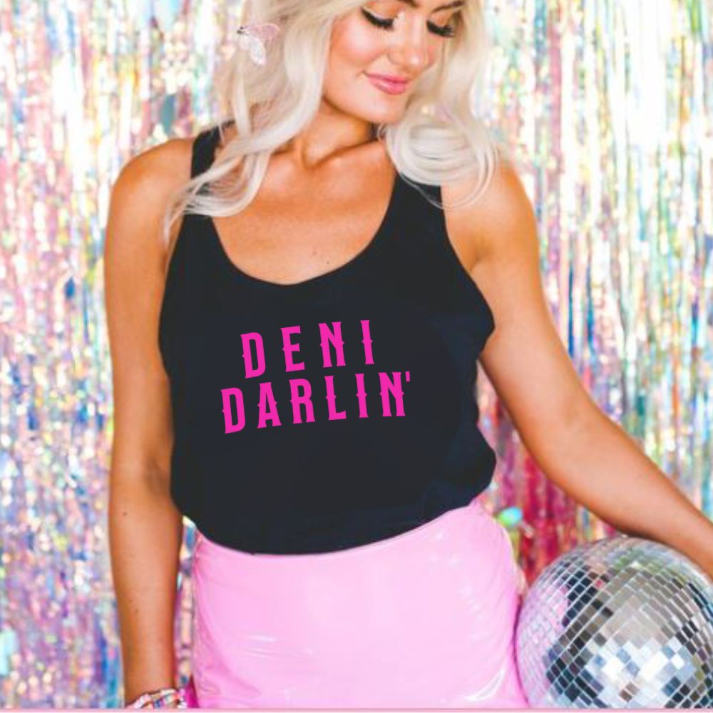 For the Darlin's of Deni...y'all know who you are! Choose from a Black or White Unisex Singlet with Pink Print or Red Print. I recommend checking the size chart to confirm your size. Also available in a Unisex Tee or Women's Crop, see full Collection.