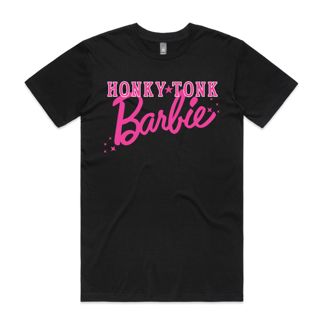 Grab this irresistible hot pink Honky Tonk Barbie print on this super soft 100 percent cotton Unisex Tee in your choice of Black, Grey or White.
